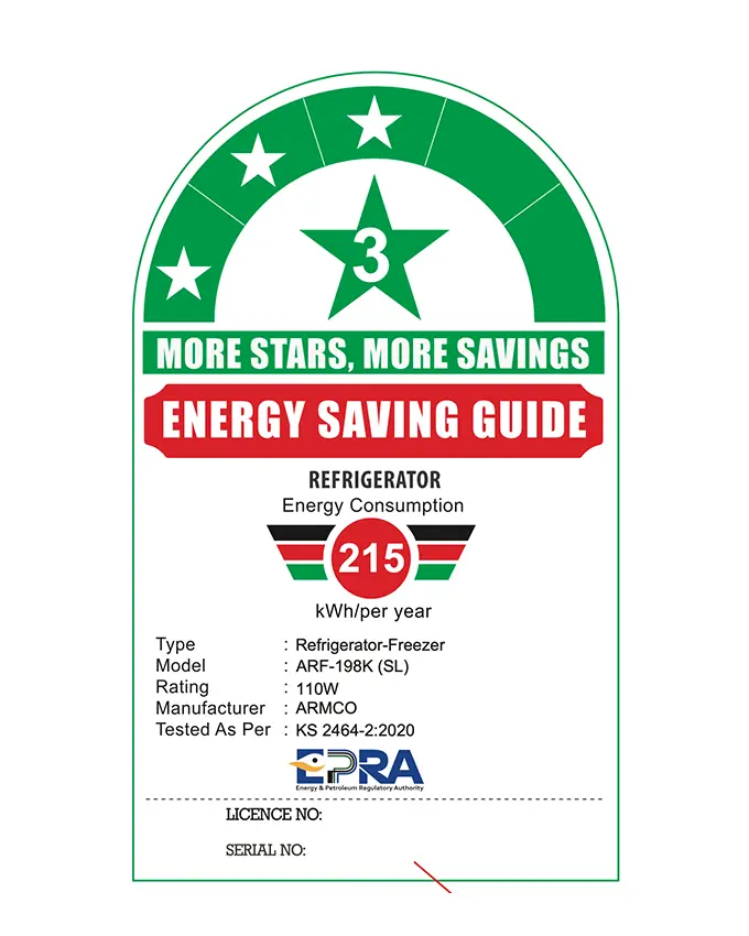Rated at 3 Star EPRA efficiency, the Armco 137L refrigerator is engineered to consume less energy while delivering top performance—making it environmentally friendly and cost-effective. Enjoy cold, fresh food while keeping your energy bills under control and reducing your carbon footprint.